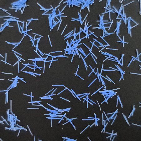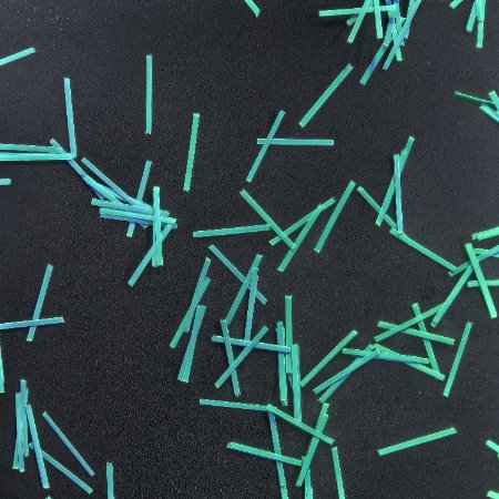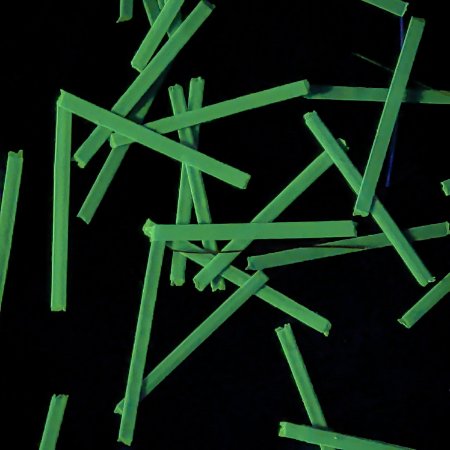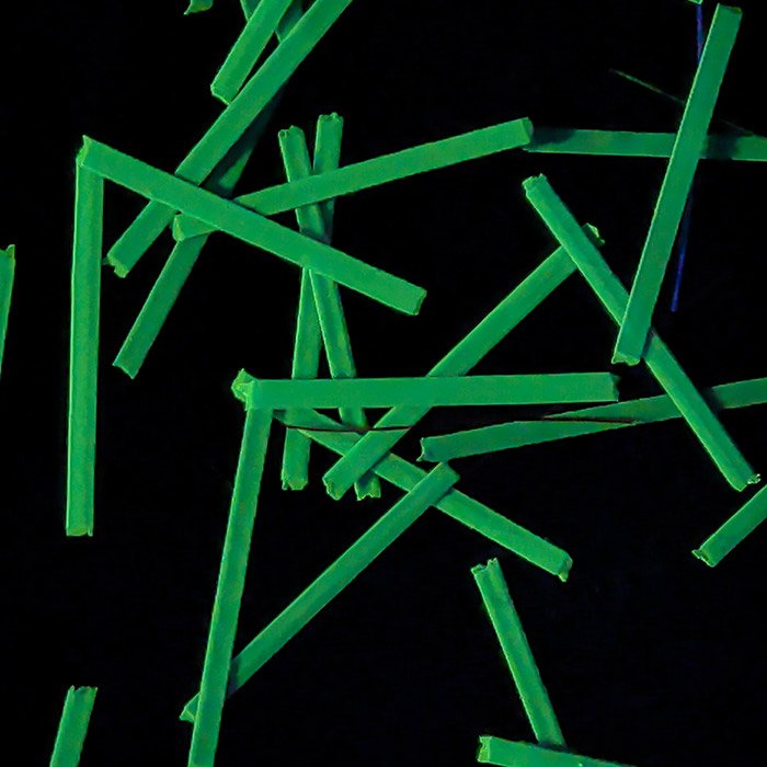 荧光变色纤维条 | 红、黄、蓝、 绿、紫、橙 等 ( 可(kě) 按 需) | 2-6mm | 厚度:30-60um 宽 度:0.1-0.4mm | 聚酯 | 一根纤维,正常颜色跟紫外颜色不一。 |