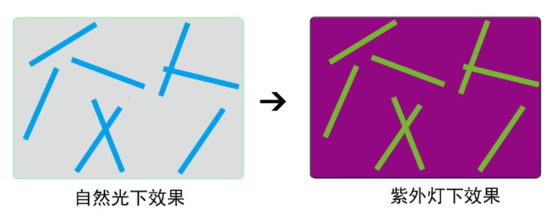表面有(yǒu)色,在紫外灯下变成另一个颜色,比如蓝色变绿色。