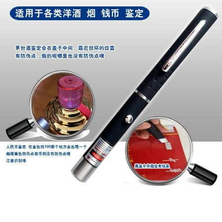不可(kě)见红外荧光防伪技(jì )术是目前國(guó)际上常用(yòng)的防伪手段之一,其隐蔽性极强,被大量应用(yòng)于货币、支票、商(shāng)标中(zhōng)的特定位置。使用(yòng)方法:将激光发射孔对准部位,按下开关键,则有(yǒu)绿色或黄色点状发光。
