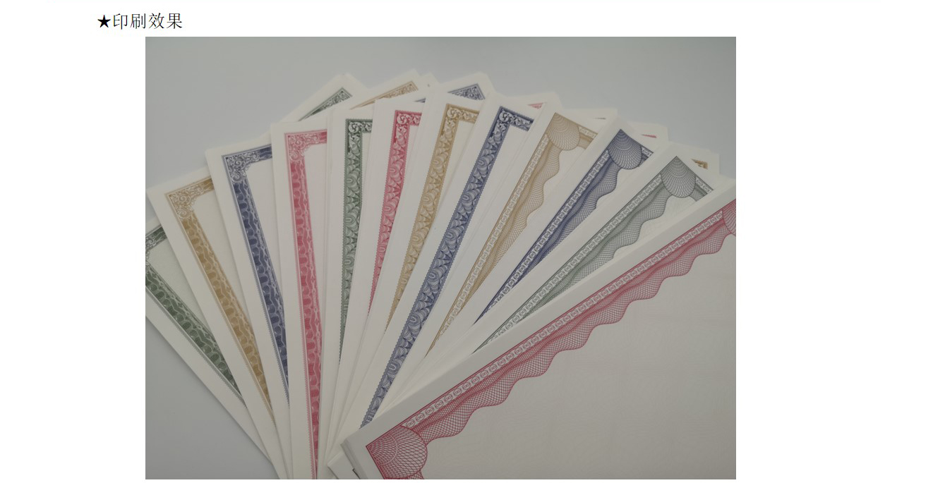 水印纸:水印纸是有(yǒu)浮雕、可(kě)触摸图像、条码等的纸张。钞票用(yòng)的便是水印防伪技(jì )术。因水印不能(néng)用(yòng)影印机、扫描器等再现,故其防伪效果甚受重视。
